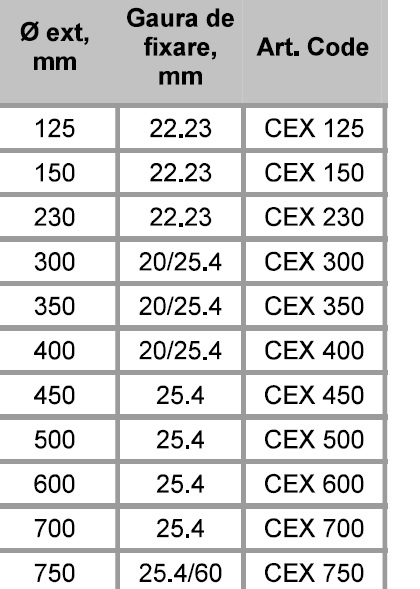 | Diametrul exterior(mm) | 125, 150, 230, 300, 350, 400, 450, 500, 600, 700, 750 |
